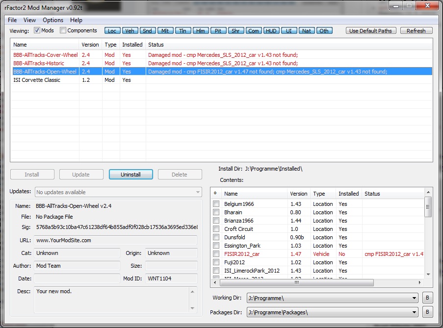 der rFF1 Formula 1 2013 ist keine Mod die wir hier verwenden. Eventuell vertragen sich die Mod´s nicht. Lösche den mal und alles was Dir als defekt angezeigt wird und führe den Sync dann erneut aus.