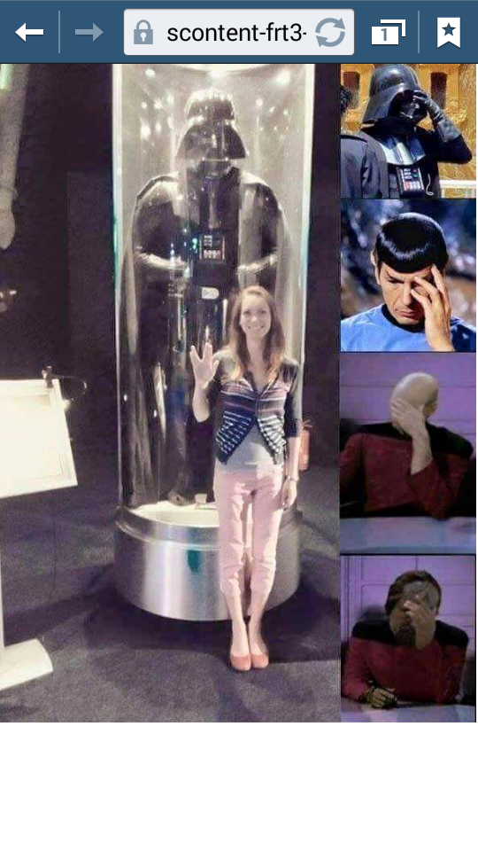 Vulkaniergruß und StarWars, sie ist eindeutig blond.