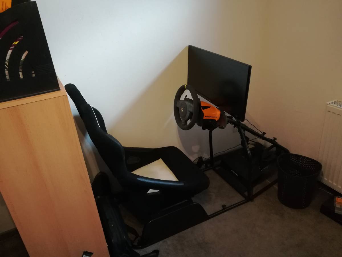 Here's my new rig setup, i've recently upgraded my wheel from a 'G29' to a 'Fanatec' wheel. its absolutely another level of realism!!!