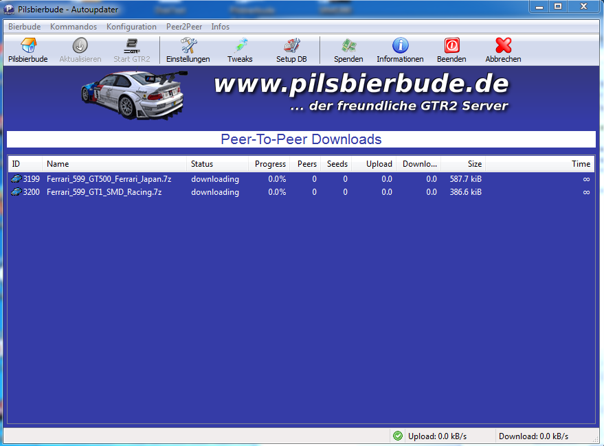 iss immer noch das selbe ... der weissbierupdater funzt aber wie immer und auch die Neuinstalltion von GT Legends hat wunderbar mit dem pilsbierupdater gefunzt .... versteh nich wieso da iwelche Prots nich richtig sind ... K.P. davon :angry: b
