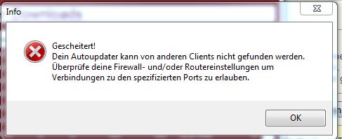Ich habe zwischendurch mal die Firewall, mein Kaspersky ausgeschaltet. Auch habe ich die Ports in meinem Router freigegeben. Nichts hat funktioniert. So saugt der Autoupdater nur sehr langsam, da ich unten ein rotes Ausrufezeichen habe (Netzwerk ist nicht konfiguriert).