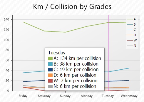 Dies wird dann mit den gefahrenen Kilometern verglichen und es gibt eine grobe Einstufung.