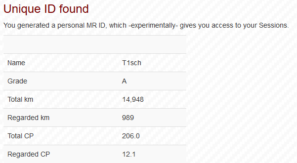 Nun sieht man unter Regarded CP seine genauen Minorating Punkte, wonach die Grades A-W eingeteilt werden. In die Bewertung fließen nur die letzten etwa 1000km (Regarded km) ein.