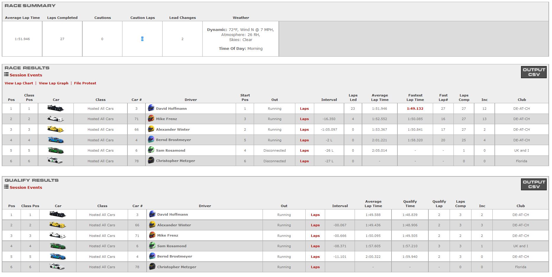 aufgrund der Teilnahme der Rennsimulanten am Benfiz Rennen am Samstag wird das Event morgen verschoben und statt dessen eine Trainingsession für das Event gefahren.