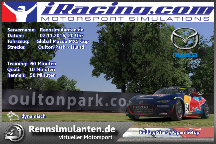 auf gehts zum nächsten Event! Am 02.11.2016, 20 Uhr in Oulton Park - Island mit dem Mazda MX 5