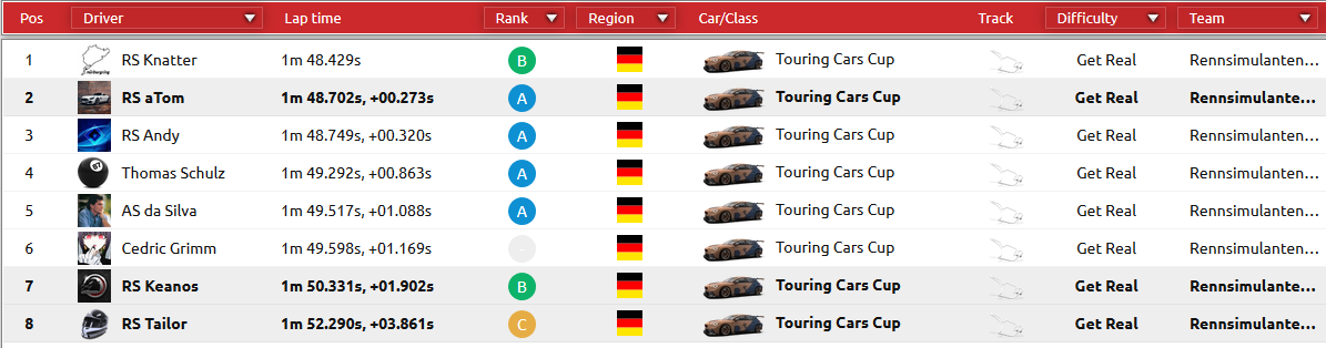 Du möchtest gerne Rennwiederholungen der Raceroom Events hier anschauen? Dann schau doch mal hier (www.youtube.com/playlist?list=PLZy8lIlBw...dAfez3ZLO2ORMJmJ3MKI) |