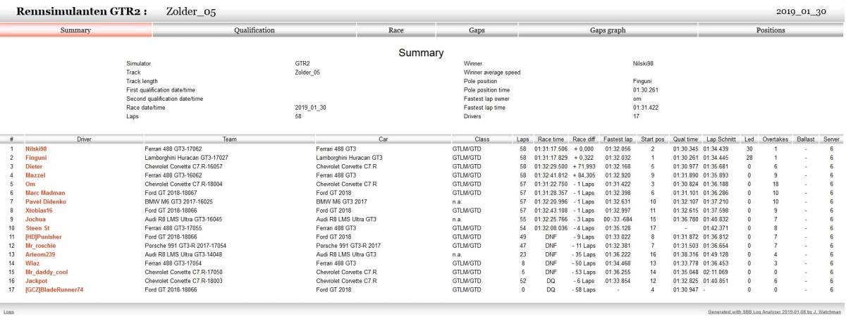 Ich wollte keinen FordGT/Corvette Cup und noch 2 verschiedene Klassen hats nicht gebraucht.