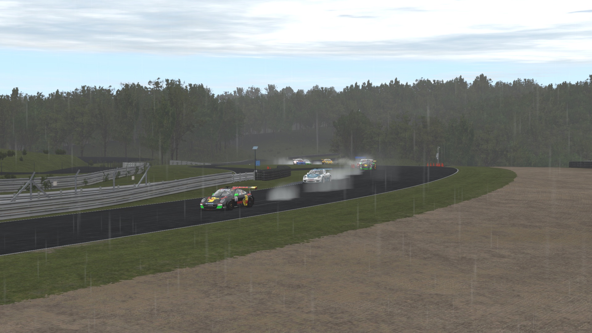 Das Rennen ansich war tatsächlich eines der härtesten bislang. Doch obgleich an den Regenreifen vielleicht nochmal Hand angelegt werden sollte, fand ich, dass der Porsche sehr gutmütig und mit angemessener Vorsicht gut zu händeln war. Und die Strecke finde ich vom Charakter her auch sehr ansprechend. Die wird sicherlich in Zukunft auch noch mal in den Fokus rücken, um sie mit dem kleinen Skippy oder Palatov zu befahren.