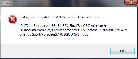 ...hmmm, mir wurde nach dem Download ein Fehler bei einer DDS-Datei eines Fahrzeugs angezeigt. Dort stand, man solle es im Forum melden. War aber spät (mit nem 2000er-DSL dauert es ewig) und daher habe ich es gestern nicht mehr gemacht.